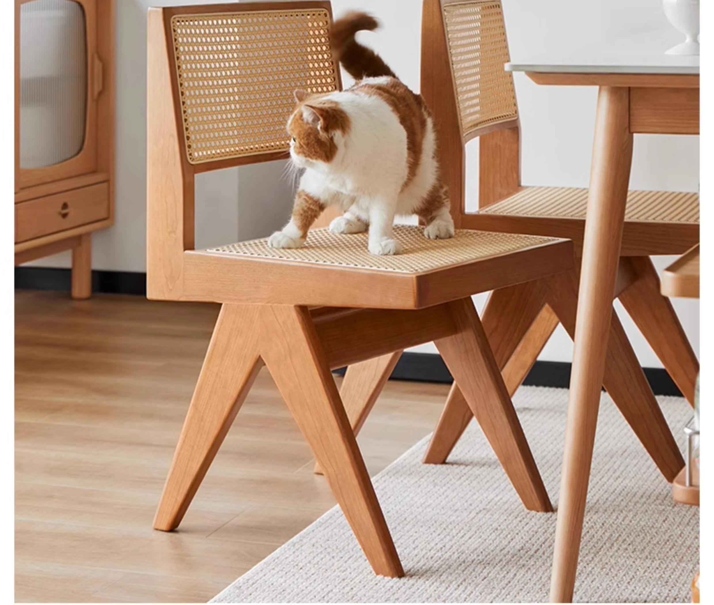 Nordic Cherry Wood Dining Chair - Handmade Solid Wood Bengalore Chair with Rattan Backrest - Stylish and Comfortable Leisure Chair for Your Home Decor
