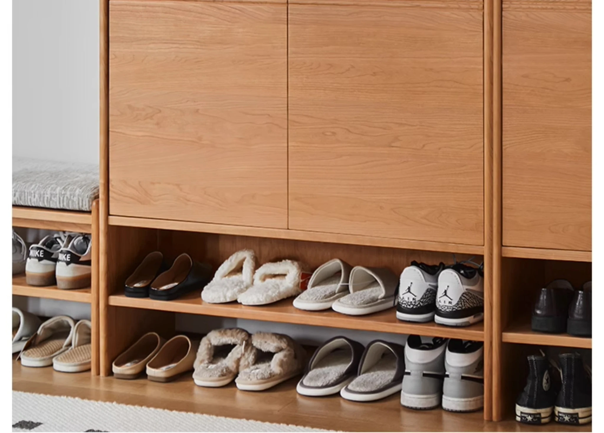 桜の木のぬくもり溢れる!北陌家具実木シューズキャビネット&玄関ベンチ - 和風デザインでおしゃれな玄関を演出。家庭用エントランスに最適!