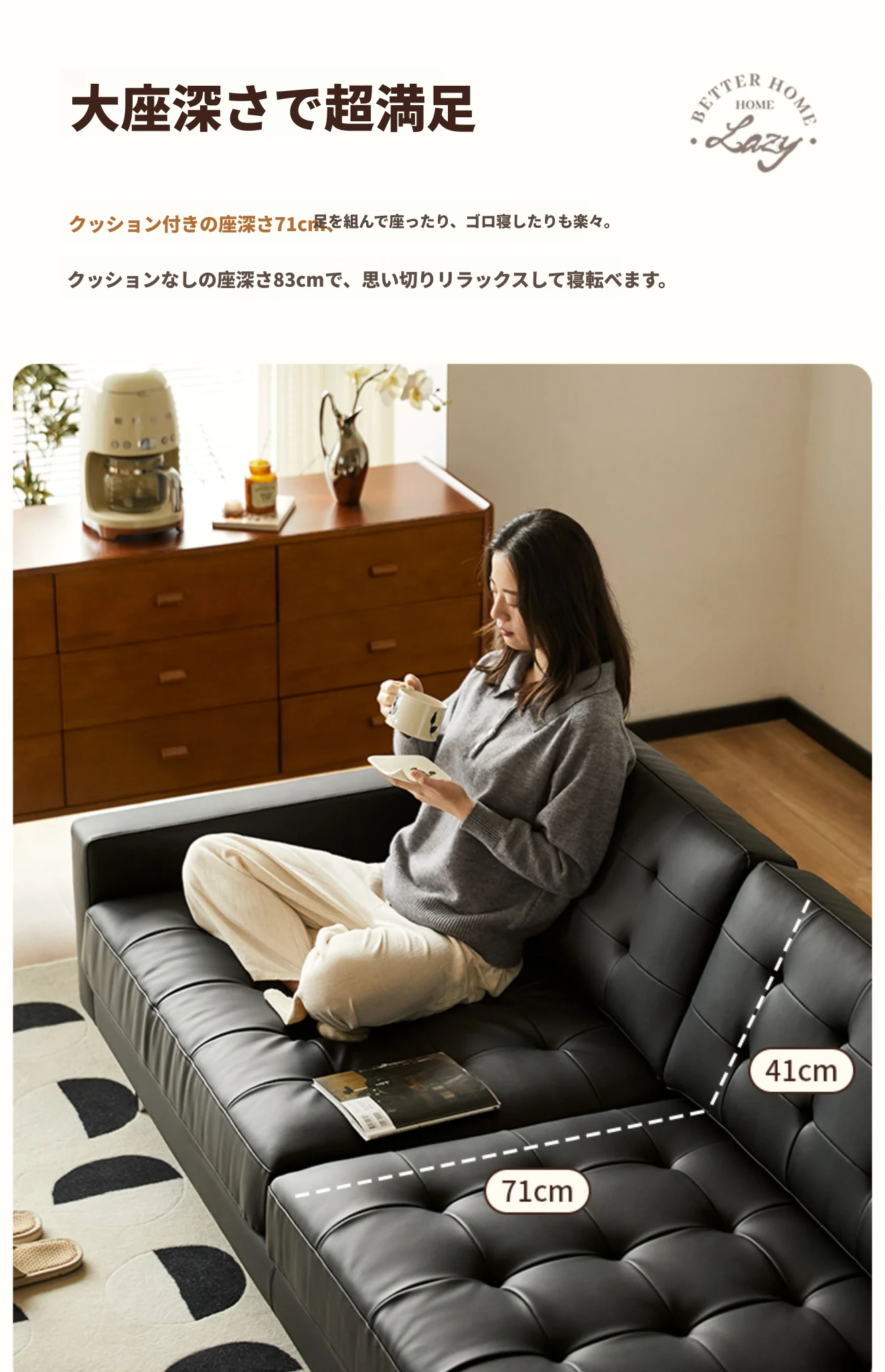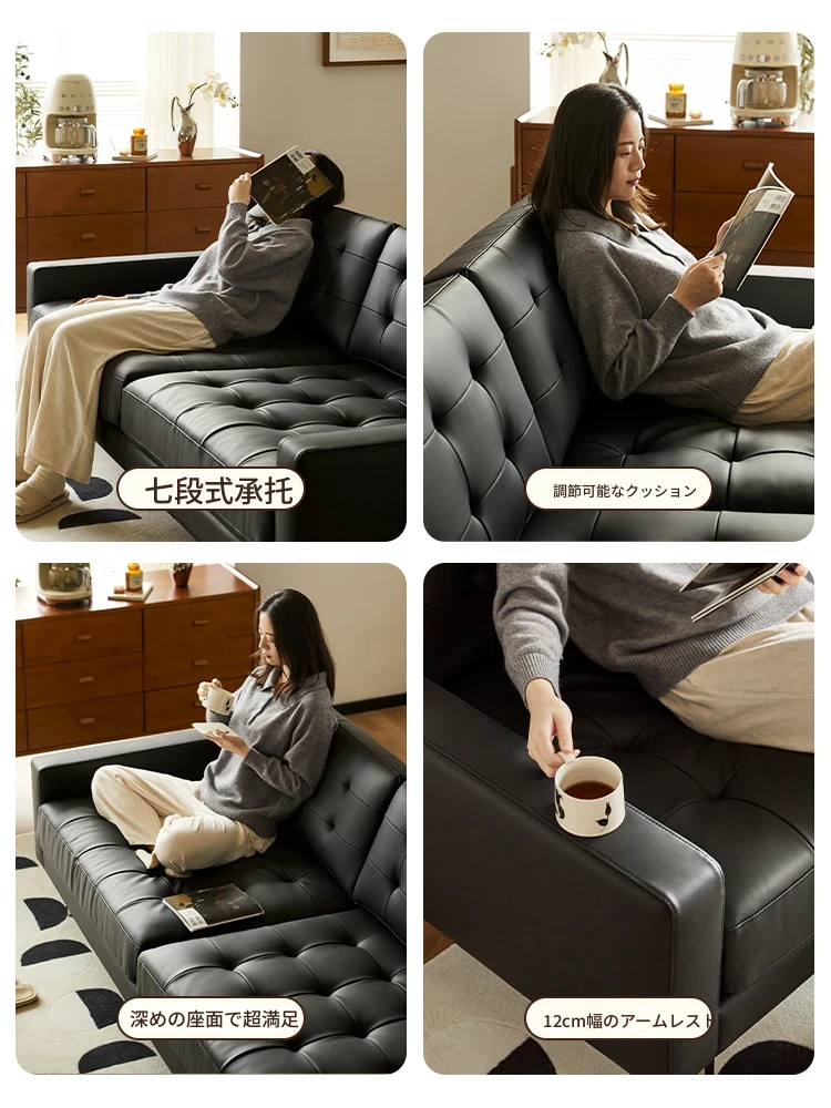 北陌家具 高級本革ソファ - コンパクトデザイン、メタルレッグ付き(ヴィンテージスタイル) 高品質なブラックトップグレインレザー使用、最新技術のエコレザー仕上げ