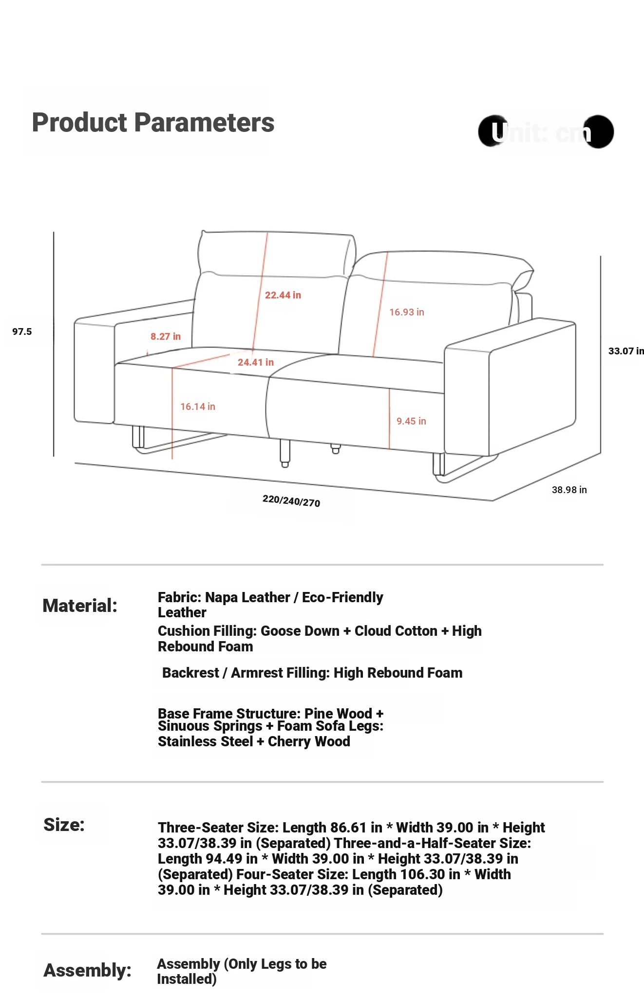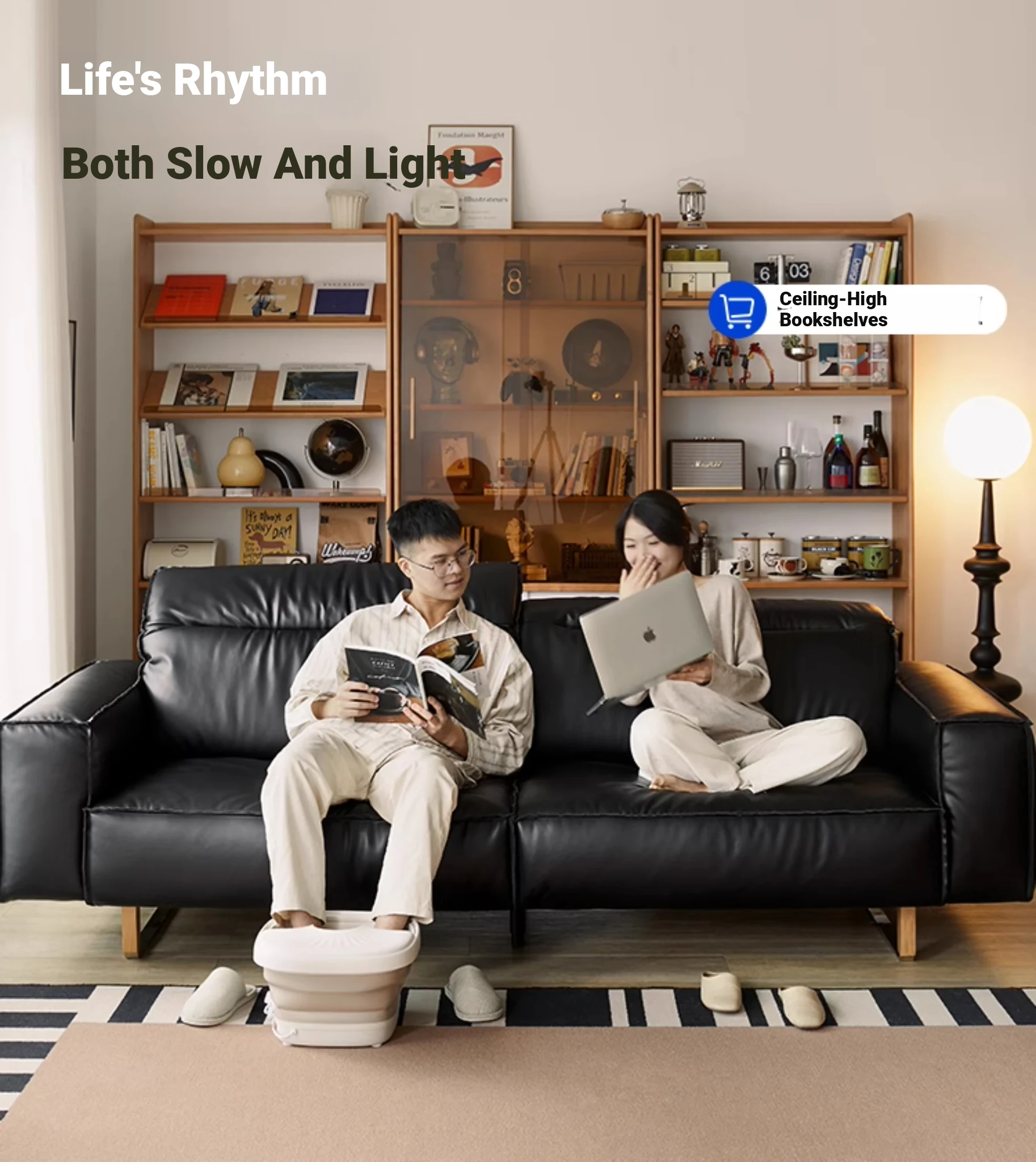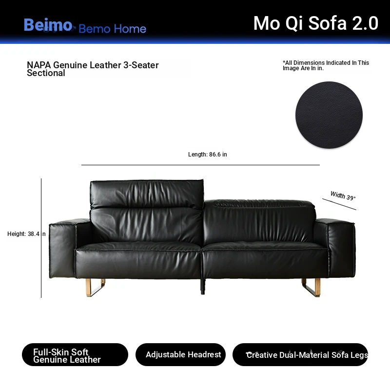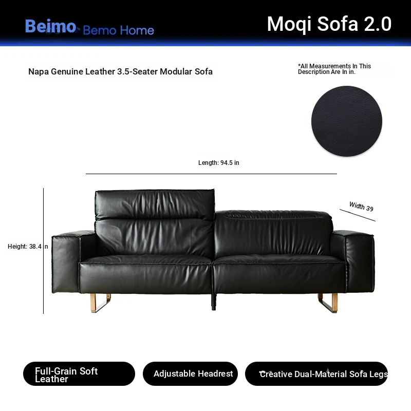 Ink rest sofa 2.0 [NAPA leather] Xuan ink black four-person Separates