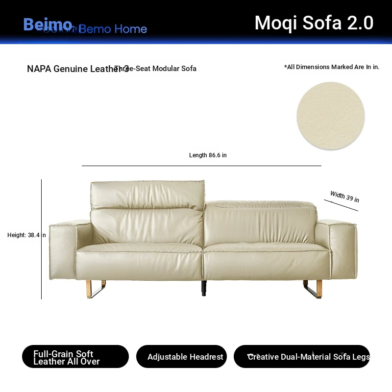 Ink rest sofa 2.0 [ecological leather] Liuhua white three-person half-position Separates