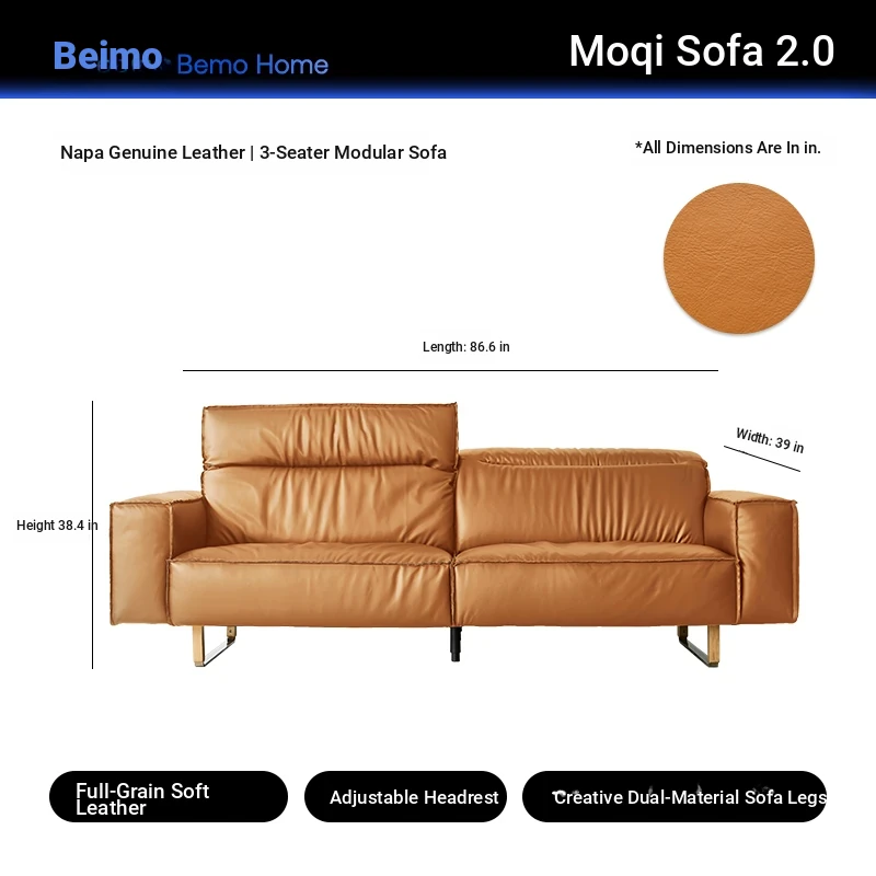 Ink rest sofa 2.0 [ecological leather] maple leaf brown three-person half-position Separates