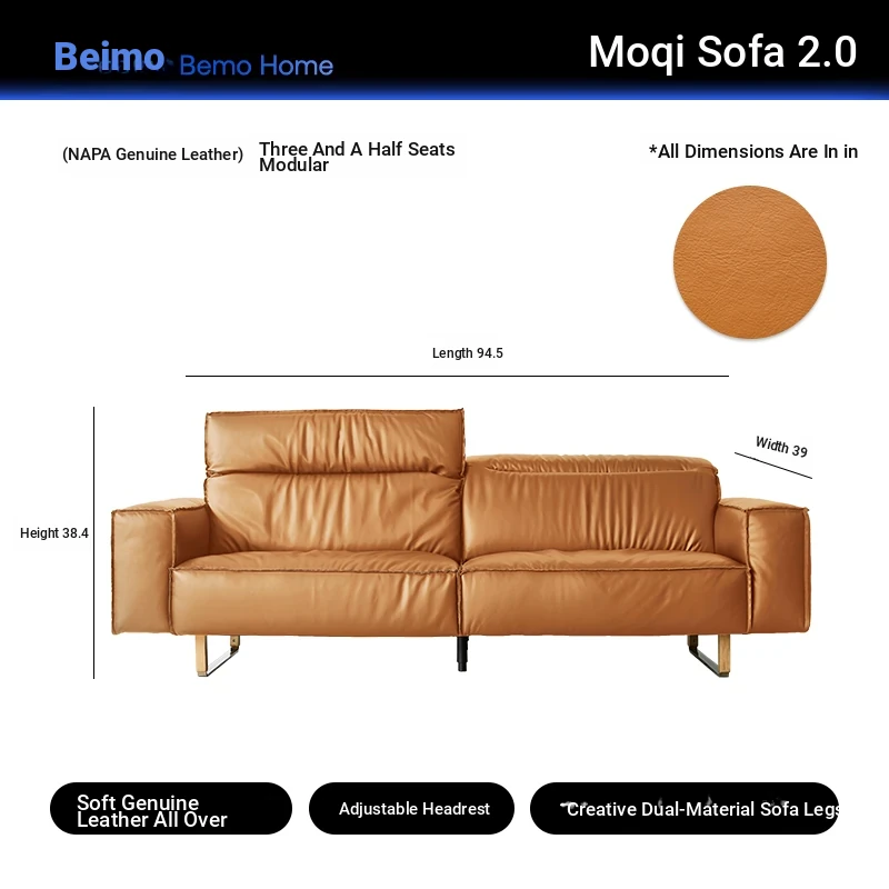 Ink rest sofa 2.0 [NAPA leather] Xuan ink black three-person half-position Separates