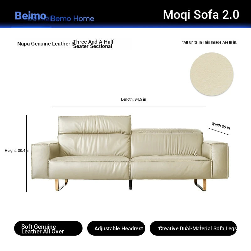 Ink rest sofa 2.0 【napa leather] close white four-person Separates