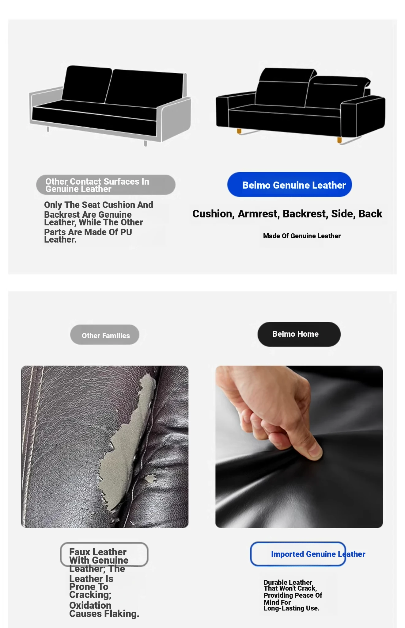 "Vintage Black Genuine Leather Sofa - High Back Design, Deep Seat, Perfect for Small Spaces, Stylish and Comfortable Real Cowhide Couch by Beimo Furniture"